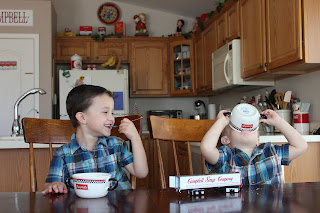 So Lauren (Collin's awesome cousin who came to stay with me this weekend) and I cleaned up my kitchen and took some pic of my cute monsters. Nick of course started crying. He hates people telling him he has to sit and eat ice cream. Okay he just hates people telling him what to do.